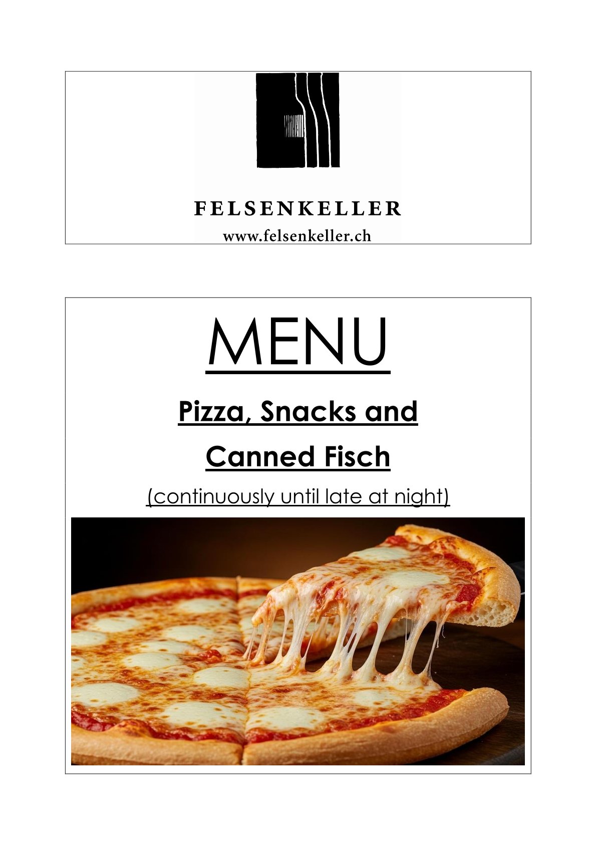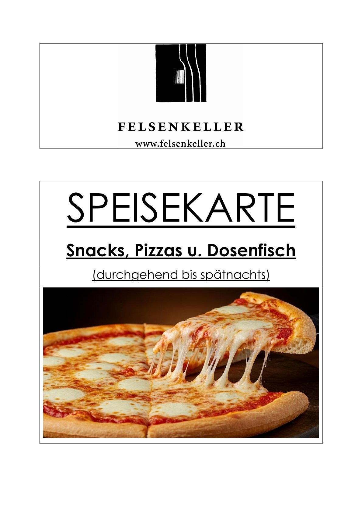 kleine Speisekarte durchgehend bis spätnachts